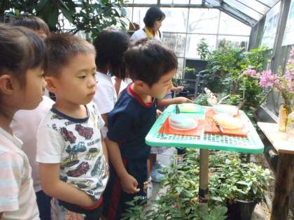 他にも,空気の実験を見せてもらったり,チョウの館では見たことのないチョウやサナギなどをたくさん見つけたりしました。