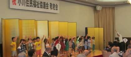 今日は幼稚園の地域の学区が毎年開催されている敬老会に4歳児ばら組の子どもたちが参加しました。