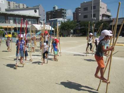 竹馬や一本歯下駄、ジャンプやおいかけっこなどいろいろな遊びも楽しんでいます。