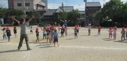 今日は、先生てんぐが大きな“てんぐうちわ”であおぐと、強い風が吹いて、ぴゅ〜っと遠いところまで風に乗って飛んでいきます。