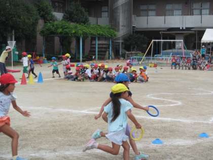 3歳児や4歳児の子どもたちはその活動を見て「がんばれー!」と大きな声で応援しています。
