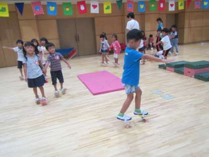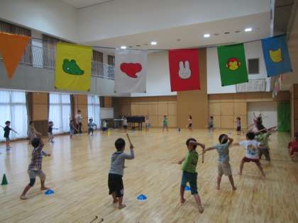 今日は朝から雨でしたが、幼稚園の子どもは遊戯室などで運動会の遊びを楽しんでいます。