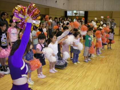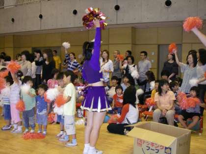 今年は,同志社大学チアリーディング部の学生さんに来ていただき,チアの演技を見たり,一緒に動いたり遊んだりしてひと時を過ごしました。