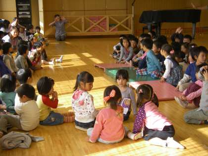 見てもらっている喜びを感じながら,楽しんでなかよし遊びをしている様子が伺えました。遊びが終わると「どうでしたか?」とお客様に尋ねたり,先生たちからも感想を求めたりしていました。