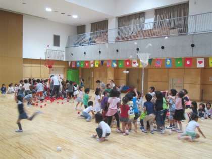 みんなの大好きな玉入れは、1回戦は赤チームが5つ差で勝ちました。でも、2回戦は白チームがなんと1つ差で勝ちました!接戦でした!