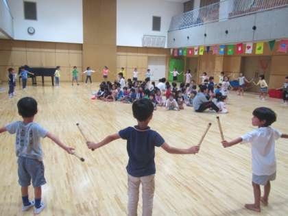 ゆり組の「ソイヤ!」は、いつもは、園児席から見ているのですが、今日は踊りの輪の中に3歳児4歳児が入り、間近で見学しました。ゆり組の掛け声や踊りが、いつもよりも迫力倍増!とても素敵でした!!