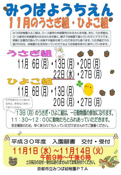 11月も幼稚園で楽しく遊びましょうね。今月は1日動物園もありますよ!