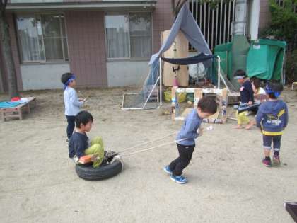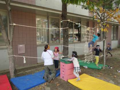子どもたちの遊びのイメージや思いをとらえ、もっと楽しくなるように、十分に体を動かして遊べるようにと、教育委員会の先生に助言をいただきながら学びました。