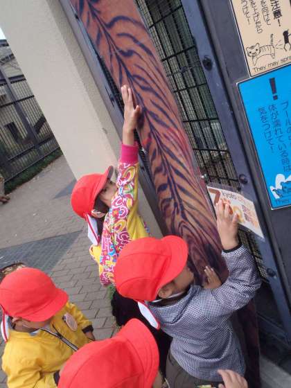 ガラス越しにじっくりと動物たちの様子を覗き込んだり,トラのパネルと背比べをしてみたり,たくさん歩いて普段見ることができない動物を見ることができて楽しかったね!