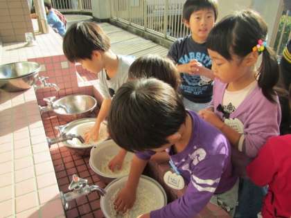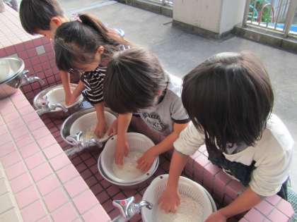 など、色々なことに気が付きながら、また、お米の感触も楽しみながらしました。