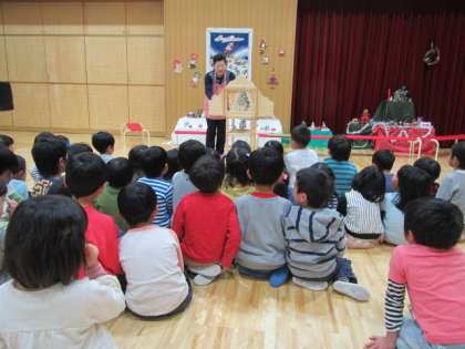 今日はなかよしタイムで絵本ボランティアによる紙芝居を見ました。
