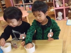 今日は,幼稚園で夏に収穫したポップコーンをみんなで食べました。