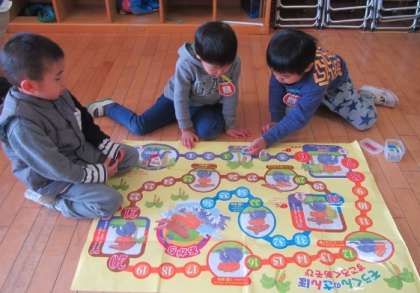 その近くでは、4歳児がすごろく遊びをしています。