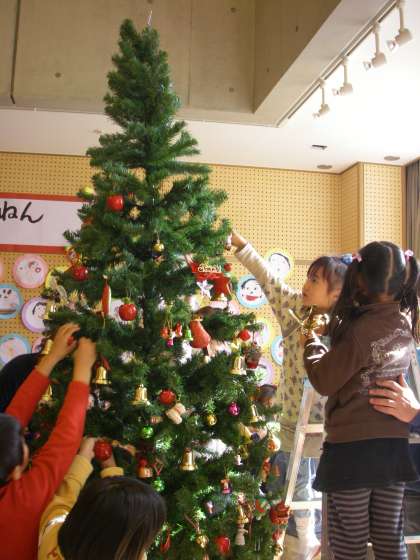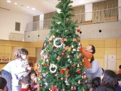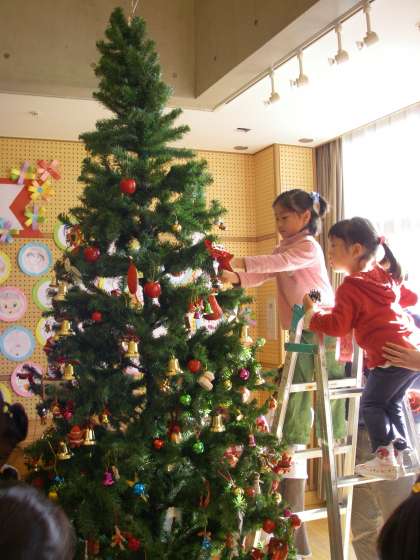 今日から12月。みんなで遊戯室にクリスマスツリーを飾りました。