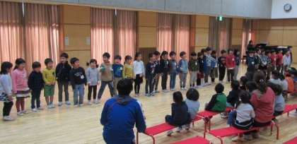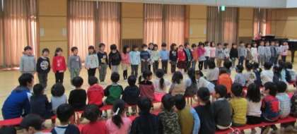 ばら組は「おひさまになりたい」、ゆり組は「カレンダーマーチ」と「あしたははれる」を歌いました。