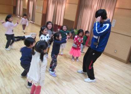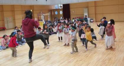お客さんに観てもらって、3歳児の子どももはりきっています。