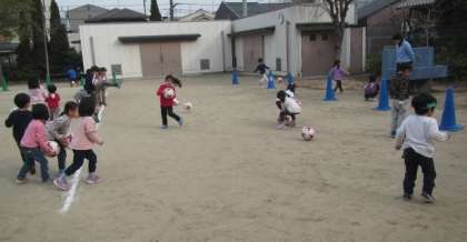 今日の預かり保育は、京都サンガが行っているKIDSサッカーキャラバンに来ていただきました。