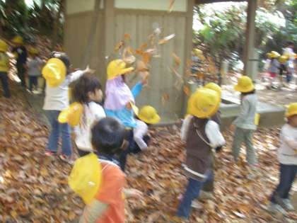 落ち葉がいっぱいの所では,落ち葉かけも楽しかったね!さあ,あともう少し!