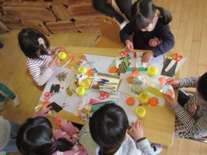 4歳児ばら組は,綺麗な着物を着せてつくることを楽しみました。