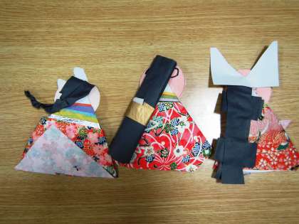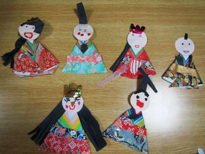 幼稚園では,今,自分のひな人形をつくることを楽しんでいます。