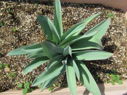 写真右:ギガンチウム(5月ごろ花が咲きます):ばら組の前