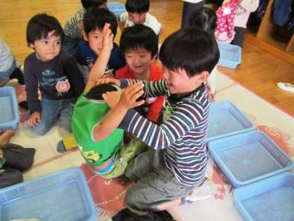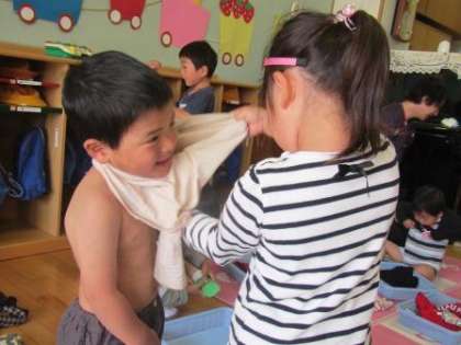 最初は“どうやって手伝ってあげたらいいかな…”と,おそるおそるかかわっていたゆり組も,次第にお互いにこにこ笑顔が見られ