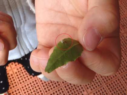 5歳児ゆり組の子どもたちは,先週金曜日に卵を見つけ,アオムシが生まれてくるのを楽しみにしていました。