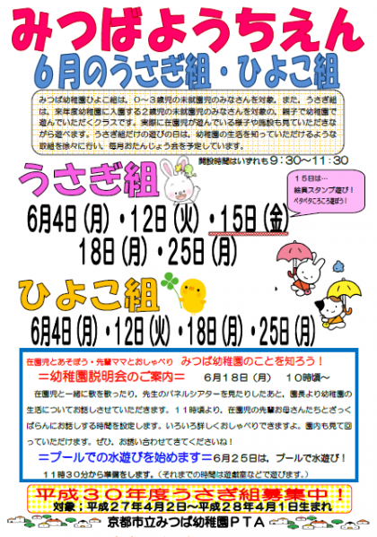 6月の教育相談うさぎ組・ひよこ組のお知らせ