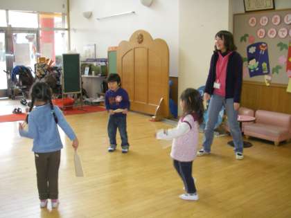 保育室では,いろいろなお正月の遊びも楽しんでいます。こままわし,カルタとり,トランプ,羽つき,凧揚げ・・・。