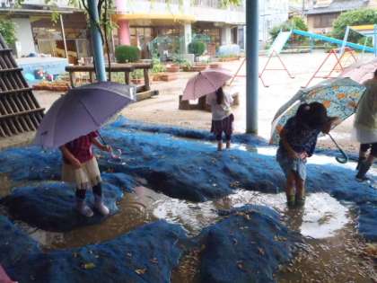 砂場も水たまりができています。