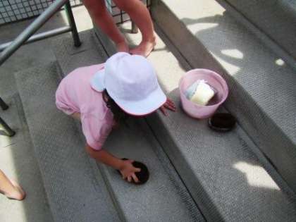 5歳児ゆり組は,来週に向けてプールサイドを掃除しました。