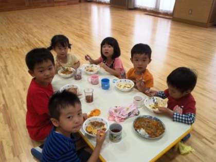 「一緒に食べてたもも組さん,ゆり組カレーおいしいって言ってくれた!」