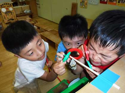 「アオムシの時は羽もないのに,いったいさなぎの中でどうなっているんだろうね?」