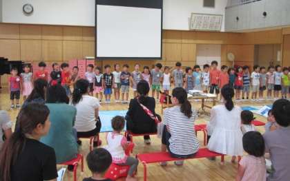 5歳児ゆり組の子どもたちの歌を聞いてもらったり、園長からみつば幼稚園のあれこれをお伝えさせていただきました。