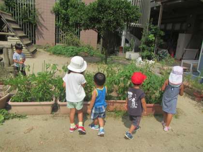 草引きをしたいところですが、朝なのにあまりの暑さなので、今年は子どもたちの草引きは控えています。(先生たちでちょこちょこ抜いています)