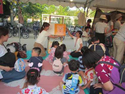 8月4日(土)の夕方より,新町小学校で「中立ふれあいひろば」が開催されました。幼稚園からもPTAの皆さんによる輪投げコーナーと,先生たちによる読み聞かせコーナーで参加し,たくさんの子どもたちが来て賑わっていました。ご協力いただいた保護者の皆様,ありがとうございました。子どもたちもいろいろな遊びコーナーや盆踊り,花火など,地域の皆様の中で,楽しい時間を過ごさせていただきました。ありがとうございました!