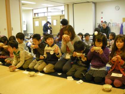 ウサギさんのお饅頭をいただき,お抹茶をいただきました。「おかわり」「私も」「僕も」と一席10人近くの子どもたちだったのですが,たくさんの子どもたちがおかわりをしていました。「おいしい」ということでした。