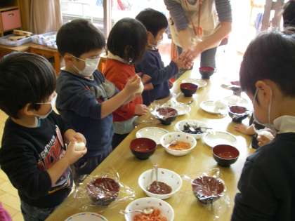 そうです。おにぎり作りをしたのです。前日から,中に入れるものを先生と相談していましたね。