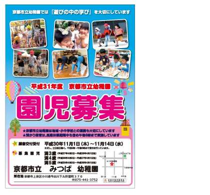 以下のポスターのように,11月1日より入園願書の交付と受付を開始いたします。