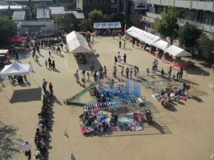 今日は穏やかな小春日和ということもあり,朝からたくさんの人が集い,活気にあふれていました。バザー会場では開始前から行列ができるほどでした。