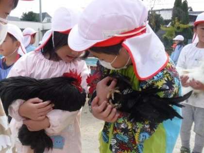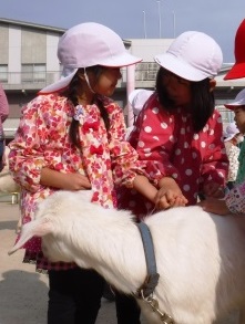 今日は幼稚園に,ポニー動物園から動物たちが遊びに来てくれました。