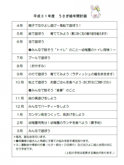 平成31年度うさぎ組の募集を1月28日(月)より開始します。