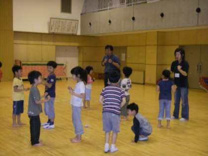 先生からの問いに元気いっぱい「はい」「はい」と手を挙げて,名前を呼ばれると答える前にまず「はい」という言葉が入り,「はい,○○です」と答えていました。