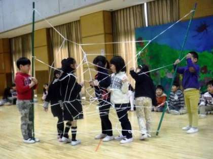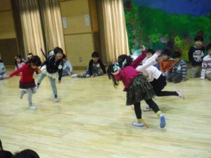 友達と一緒に協力して動きを考えたり,言葉をやりとりしたりすることを楽しんでいます。