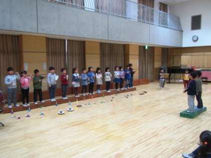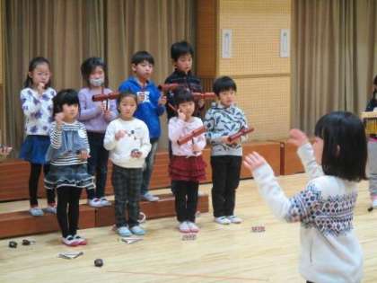 5歳児ゆり組の子どもたちは,歌や楽器遊びを楽しんでいます。