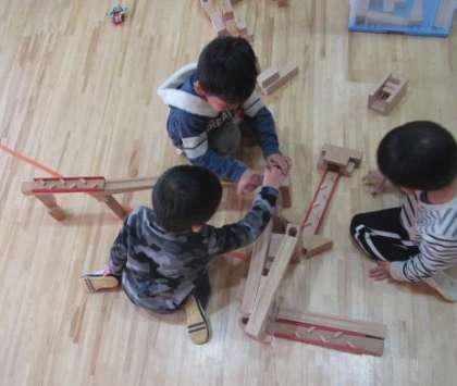 5歳児がしているのを見ながら,4歳児も友達と楽しみ始めました。