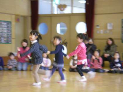 ♪4がつうまれのおともだち みんなでてきておどろうよ・・・♪年中組や年長組は,自分の生まれ月をよくわかっているので,「次や」という顔で楽しみに待っているのが