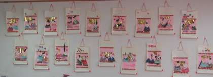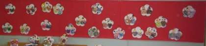 出来上がったお雛様は壁にかけたり,段に飾ったりしています。