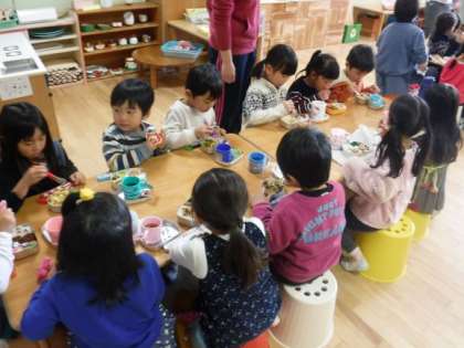 園長室でちょっとお行儀よく食べたり・・・。
