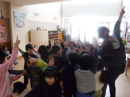 最後の「このゆびとまれ」という歌詞で,指を空高く指さす時,みんなの指が集まって,なんとも幸せな感じがします。